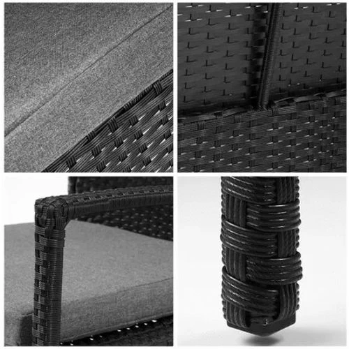Ce salon de jardin se compose d’une table avec verre trempé et de 6 fauteuils en résine tréssée et leurs coussins.