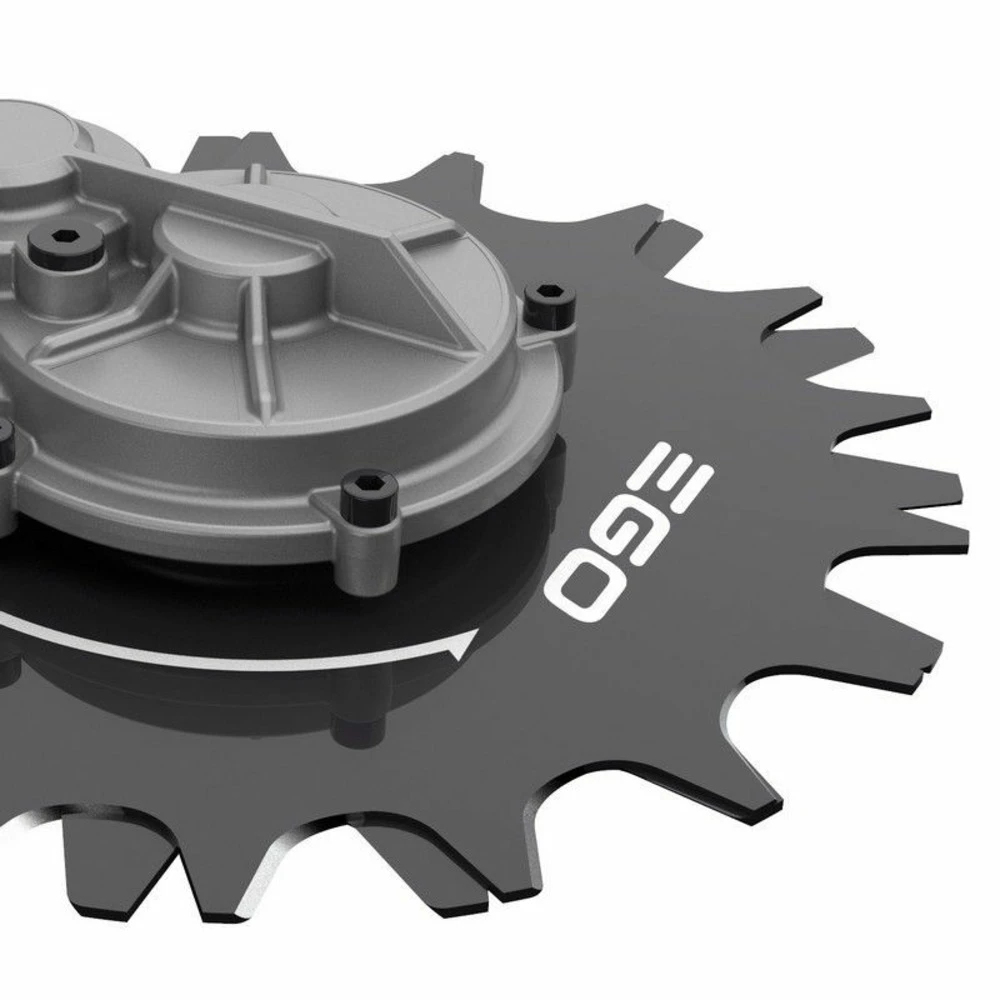 le rotocut assure la continuité d’un travail sans nuisance et se fixe facilement sur le bloc moteur ph1400 du concept multi-outils à batterie de la gamme ego power.