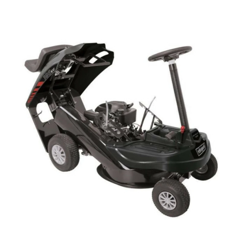 Tondeuse autoportée 196 cc – largeur de coupe 61 cm – ejection bac- hauteur de coupe ajustable sur 5 niveaux – largeur de coupe de 61cm – démarreur électrique – 4 vitesses avant et 1 marche arriere – puissant moteur 196cc – bac récupérateur 150l